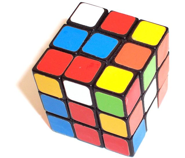 kuutio sekoitetaan, pitää sivut saada taas yksiväriseksi. Värit ovat yleensä punainen,